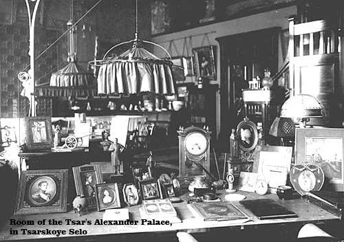 In decorating an apartment the impoverished Russian aristocrat abroad sought to recreate the rich surroundings left behind in a manner such as in this room of the Tsar's Alexander Palace, in Tsarskoye Selo near St. Petersburg. As time and budget would allow, reproductions and imperfect originals, along with suitable odds and ends, such as boxes and candlesticks, were collected and enjoyed - but usually in a room much, much smaller than Tsar Nicholas' study room (pictured above).